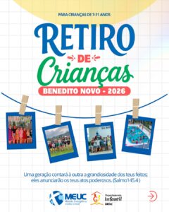 – Durante o retiro será feita uma oferta para um projeto missionário. Caso deseje que seu filho(a) oferte, pode ser deixado um valor com o monitor do quarto na chegada do retiro.
